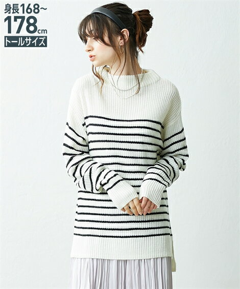 【中古】ダブルスタンダードクロージング ダブスタ DOUBLE STANDARD CLOTHING ニット セーター ボーダー モックネック 長袖 38 白 ホワイト /MF ■OS レディース 【ベクトル 古着】 211213