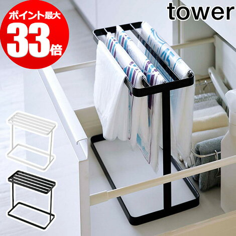 収納 キッチン シンク下ポリ袋収納 タワー tower 山崎実業 yamazaki 4926 4927 ホワイト ブラック スリム コンパクト 台所 整理 整頓 隙間収納 コンロ下 洗面下 食器棚 引き出し 省スペース 収納ラック ゴミ袋ホルダー ストッカー ステンレス シンプル おしゃれ