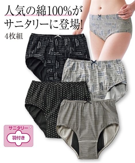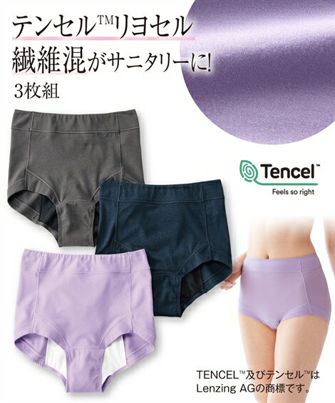 ショーツ(パンツ) (M-L) サニタリーショーツ 夜用 3枚組 (羽付ナプキン対応) ニッセン nissen シンプル ストレッチ素材 快適 まとめ買い