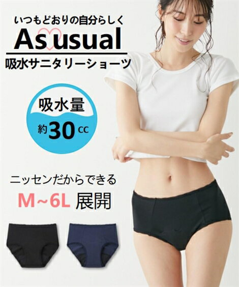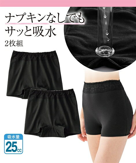 【送料無料】 ショーツ(パンツ) (LL-3L) 大きいサイズ 生理日前後も安心 ナプキンなしでも快適 1分丈 吸水 サニタリーショーツ 2枚組 ニッセン 女性 下着 レディース 生理